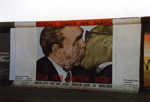Mauerbild "Mein Gott hilf mir, diese tödliche Liebe zu überleben" von Dmitrij Vrubel an der 1,3 km langen East Side Gallery in Berlin-Friedrichshain