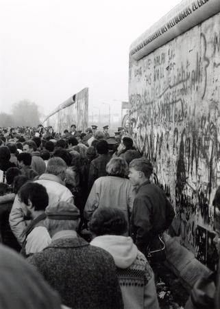 Crowds of people gathered at the border opening at Potsdamer Platz on November 12, 1989 at the Western side of the Wall