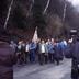 Polizisten der BRD, Grenzsoldaten und Passanten am Grenzübergang zwischen Sattelpaß bei Neuenbau im thüringischen Landkreis Sonneberg und dem bayerischen Tettau, der am 1. Dezember 1989 eingerichtet wurde