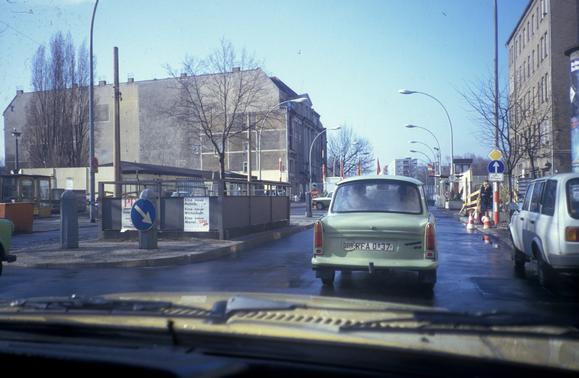 At Chausee Strasse/Liesen Strasse border crossing, one of seven street crossings between East and West Berlin (between the Soviet and French sectors) during the time of the Wall