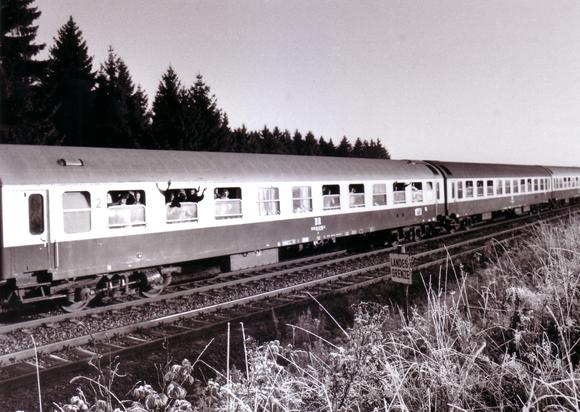 Thousands of East German refugees travelled with special East German Railway trains, arriving in the West German town of Hof in October 1989. After fleeing to the German Embassy in Prague, many of the people had been there since August until finally granted permission to leave the country on 30 September.