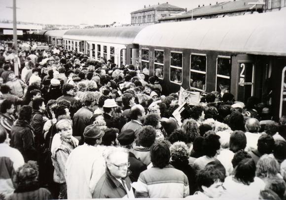Mit Sonderzügen der Deutschen Reichsbahn trafen im Oktober 1989 tausende DDR-Flüchtlinge in Hof ein. Sie waren z.T. seit August in die Deutsche Botschaft in Prag geflüchtet, bis ihnen am 30. September die Ausreiseerlaubnis erteilt wurde.