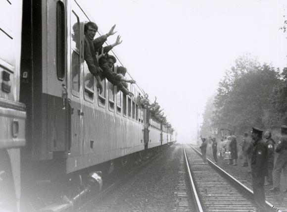 Mit Sonderzügen der Deutschen Reichsbahn trafen im Oktober 1989 tausende DDR-Flüchtlinge in Hof ein. Sie waren z.T. seit August in die Deutsche Botschaft in Prag geflüchtet, bis ihnen am 30. September die Ausreiseerlaubnis erteilt wurde.