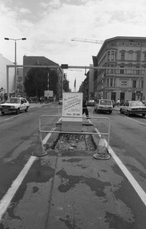 At the opened Friedrichstraße border crossing (Checkpoint Charlie), one of seven street crossings between East and West Berlin (between the Soviet and US American sectors) while the Wall was up. Checkpoint Charlie was designated for use by foreign nationals, affiliates of the Allied Forces and diplomats