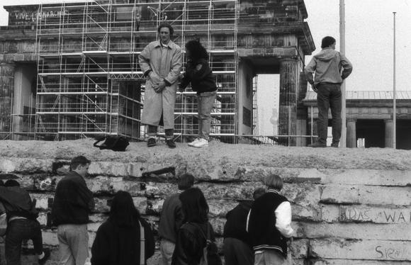 Berliner Mauer (West), Graffiti, Mauergraffiti, Mauerspecht (Person), Mehrere Personen, Meißelspuren, Stadtsanierung